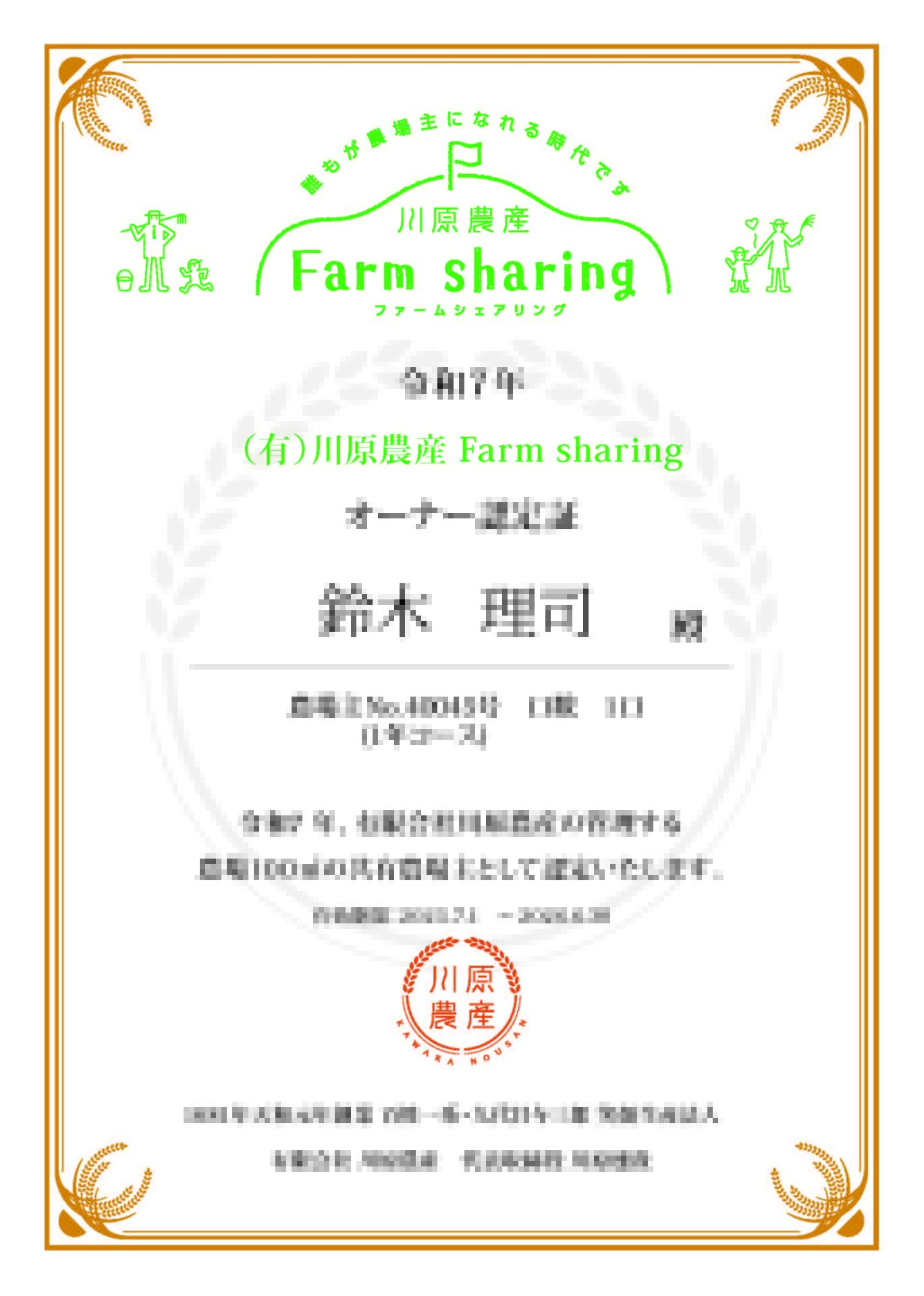 私は川原農産の一口農場主です。ビジネスだけでなく、日本の豊かな食文化を支える農業も応援しています。